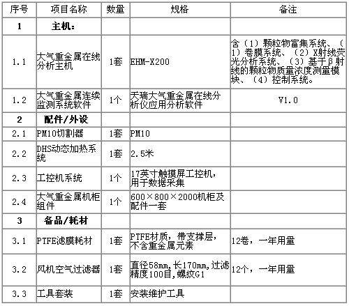 表1 天瑞儀器 EHM-X200大氣重金屬監(jiān)測(cè)儀技術(shù)參數(shù)