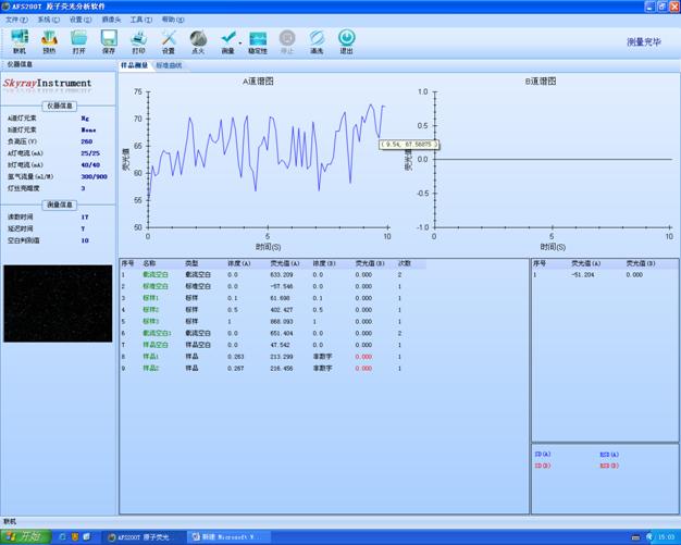 前處理:從樣品中稱量1.4034g于玻璃燒杯中,加入8ml HNO3和2mlHClO4加熱溶解(消解溫度350℃左右)。冷卻后定容于50ml容量瓶中,加入1ml HNO3,5%的重鉻酸鉀1ml。(同時做樣品空白)(還原劑加0.5%鐵氰化鉀)